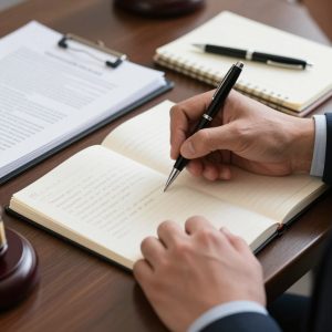 Attorney-taking-notes-during-case-review