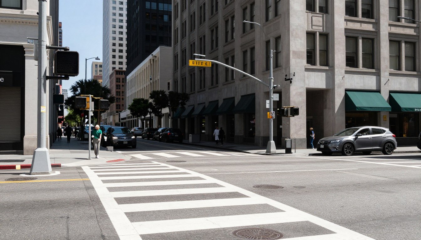 Pedestrian-crossing-in-busy-Los-Angeles-intersection